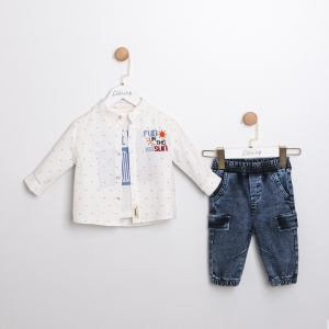 PAPYONLU GÖMLEK AYICIK NAKIŞLI İKİLİ ERKEK BEBEK TULUM