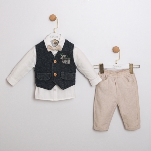 BEJ RENK YELEKLİ ERKEK ÇOCUK ÜÇLÜ TAKIM