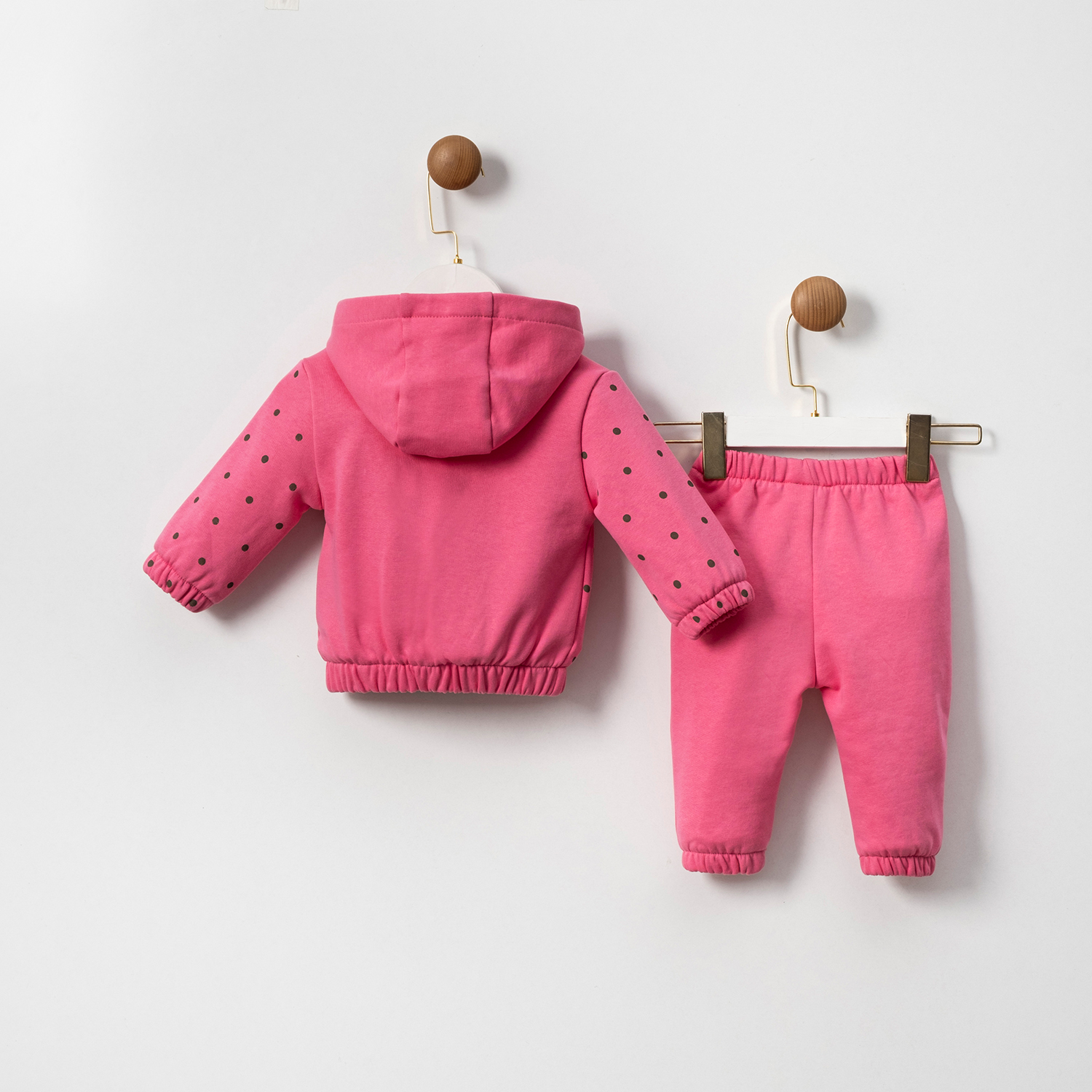 Sevimli ayıcık nakışlı, kapşonlu tatlış takım, minikler için özel olarak tasarlandı.