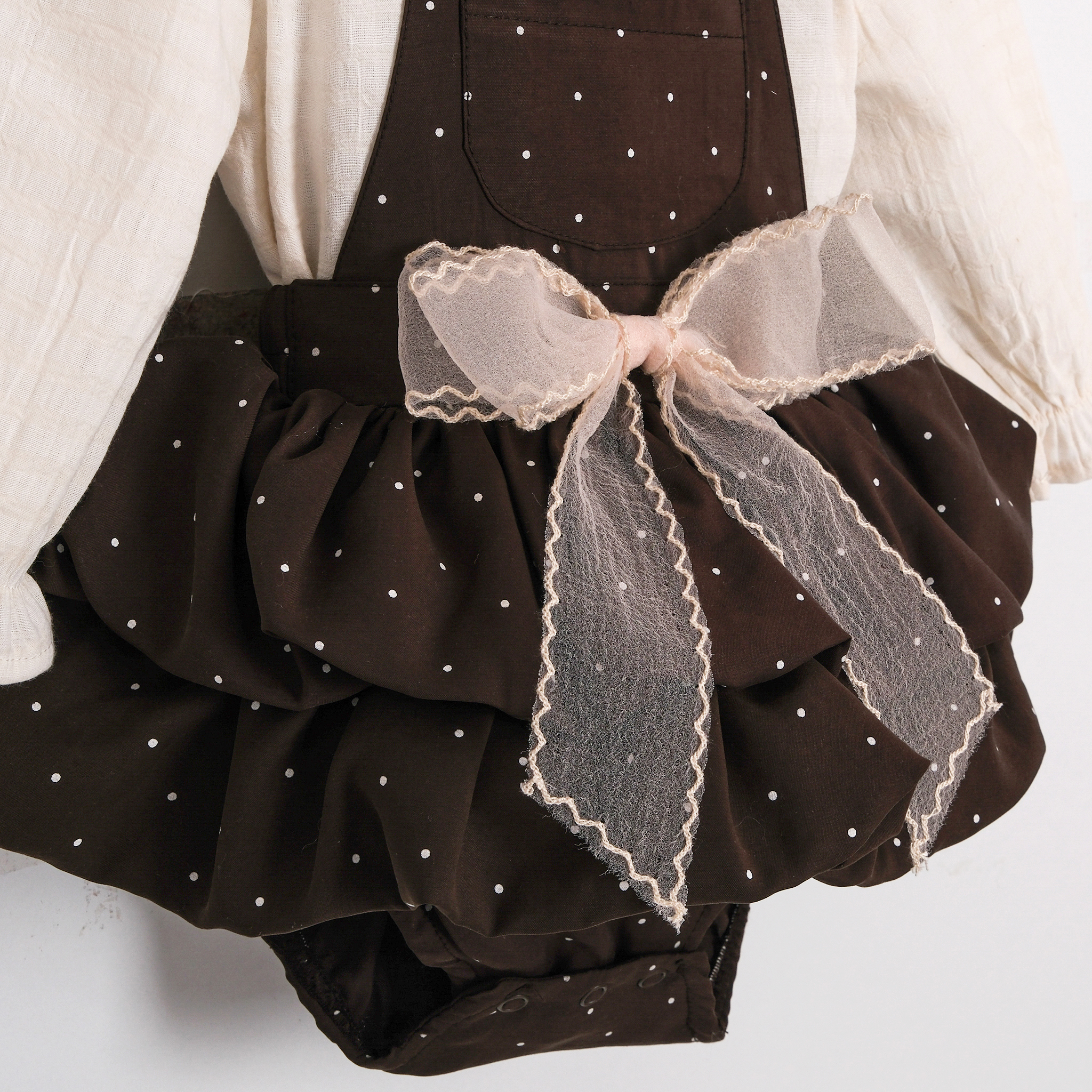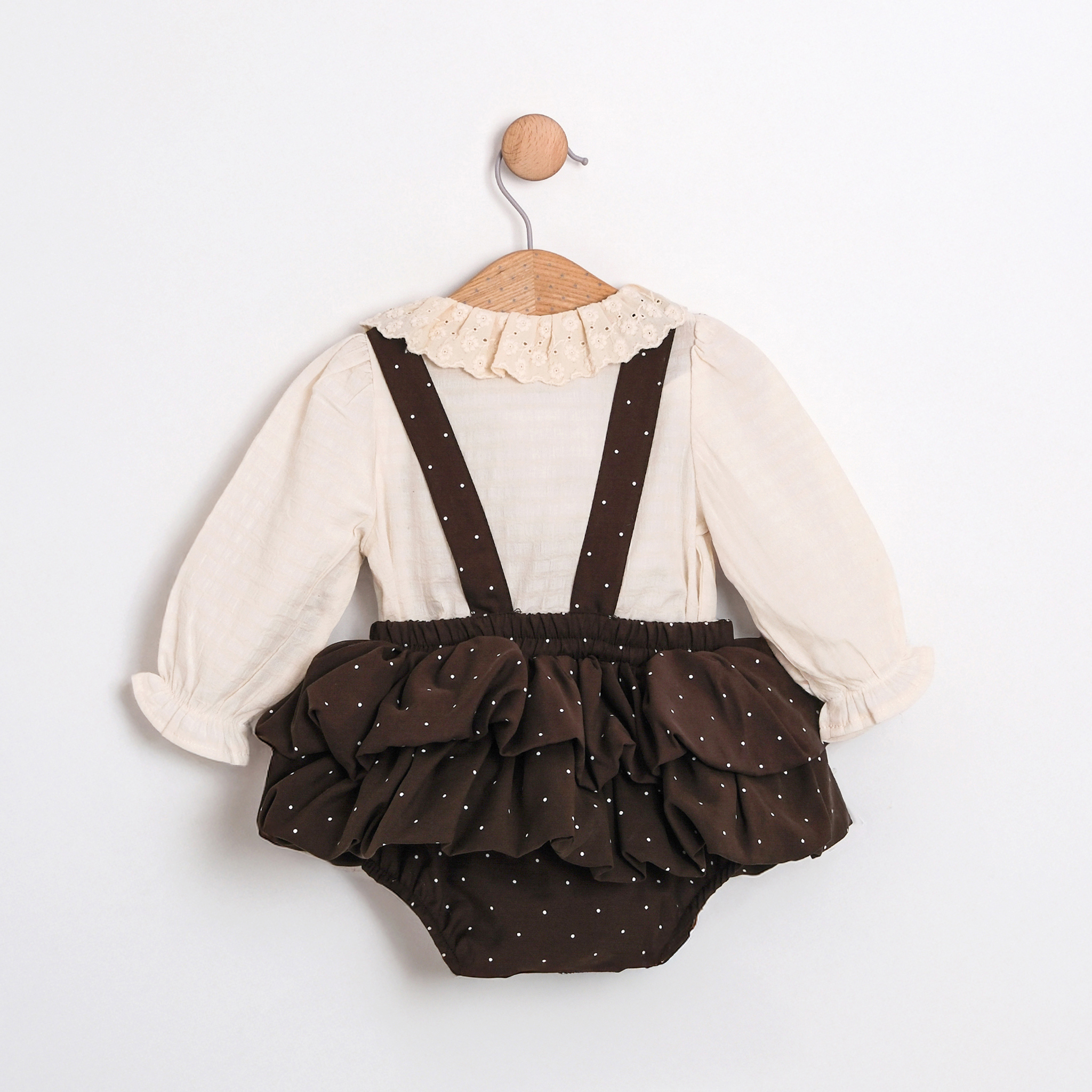 Uzun kollu gömlek & Pamuklu yumuşak dokusu ile askılı salopet romper set