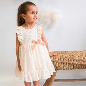 Yazın neşesine yakışan, fırfır detayları ve minik incilerle süslenmiş bu elbise, hem günlük kullanım hem de özel günler için çok güzel bir tercih:)