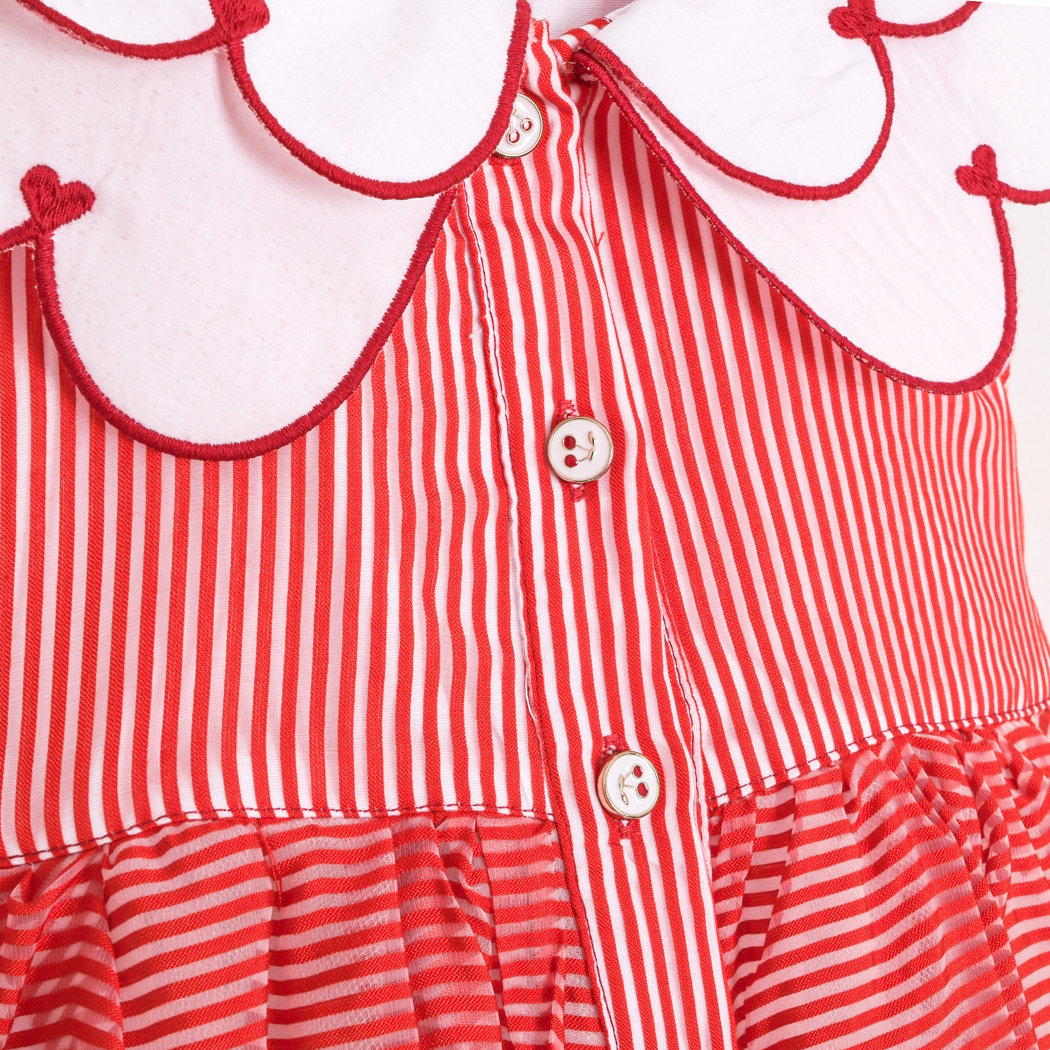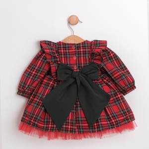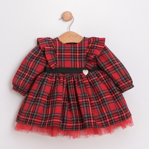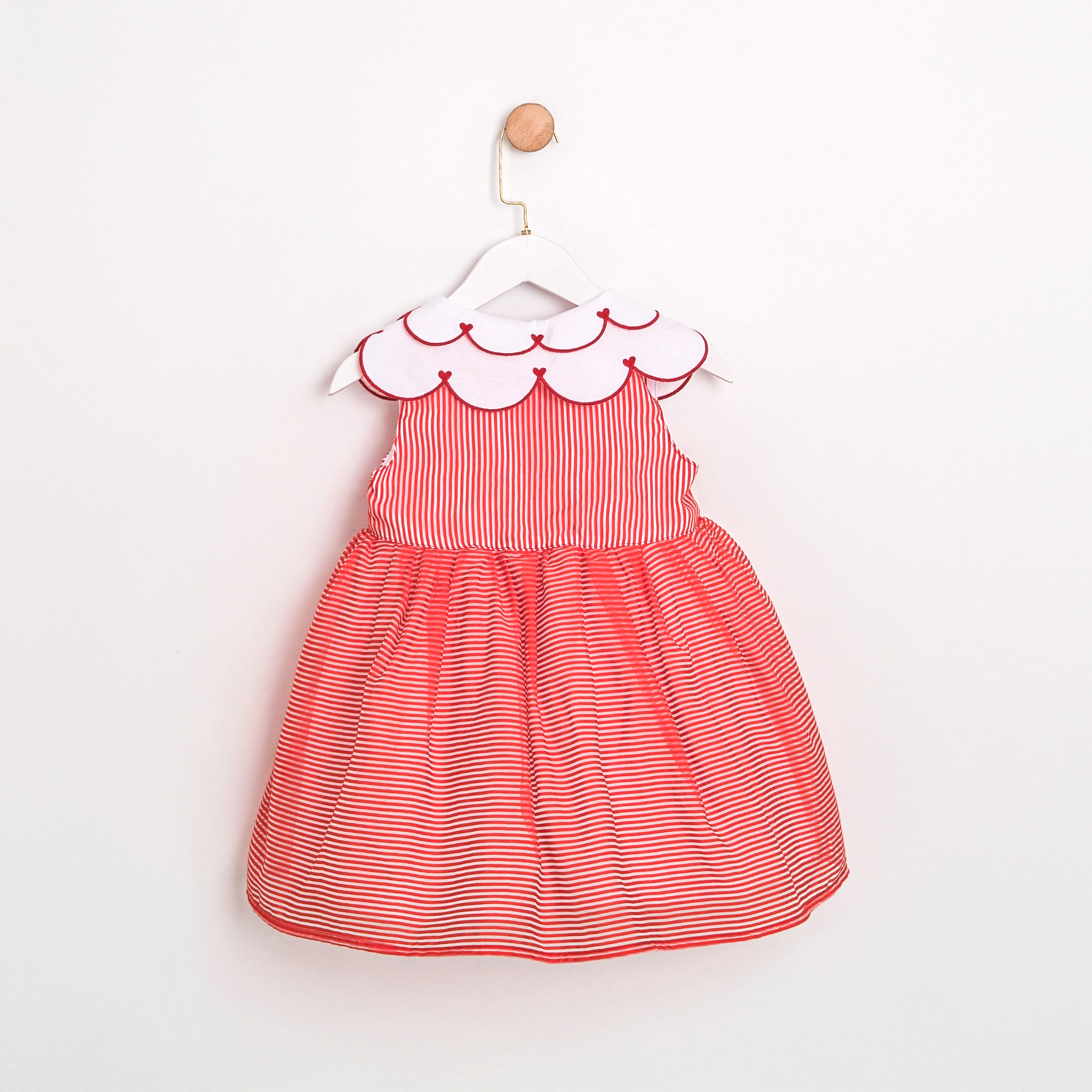 Minik prensesler için tasarlanmış, yumuşacık dokusuyla konforu, kırmızı-beyaz çizgili deseniyle neşeyi bir araya getiren elbise! Zarif beyaz yakasıyla sade bir şıklık sunan bu model, doğum günlerinden tüm özel anlar için dolaplarda mutlaka yerini almalı.