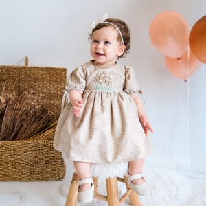 MİNİK TAVŞAN DESENLİ KIZ BEBEK ELBİSE