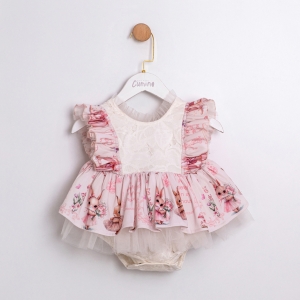 MİNİK TAVŞAN DESENLİ KIZ BEBEK ELBİSE