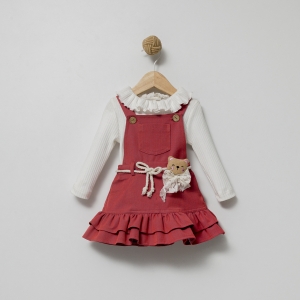 AYICIK FİGÜRLÜ FIRFIRLI KIZ BEBEK SALOPET ELBİSE