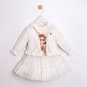 İNCİ CEKETLİ TÜTÜLÜ ETEKLİ KIZ ÇOCUK ÜÇLÜ TAKIM
