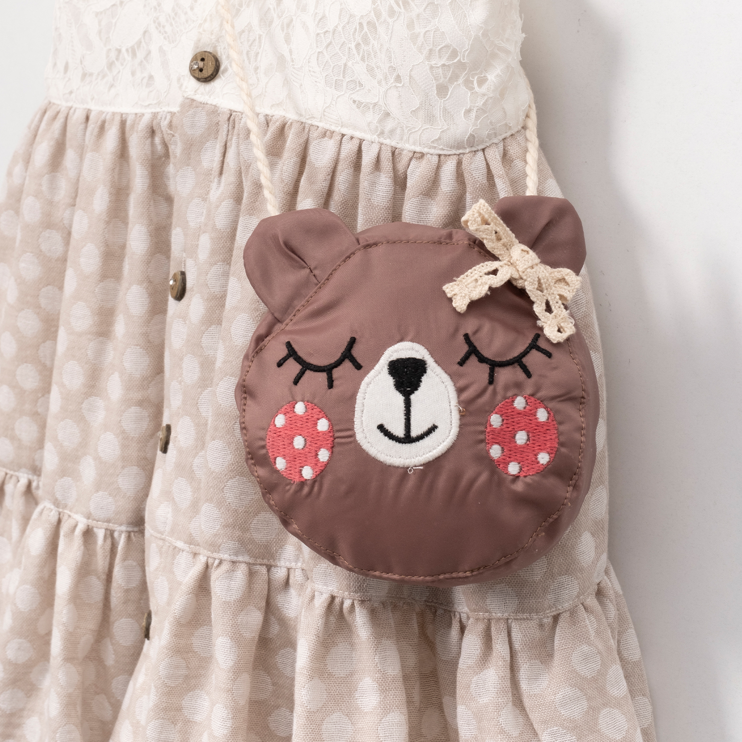 Bu tür elbiselerde genellikle pastel renkler, çiçek desenleri veya küçük ayıcık figürleri gibi detaylar kullanılır. Çantanın da ayıcık şeklinde olması, çocukların hem stilini tamamlayacak hem de oyun oynarken yanlarında taşıyabilecekleri bir aksesuar olacak.