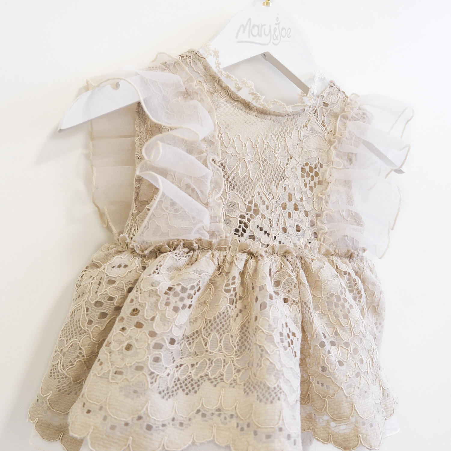 Bu özel tasarım tulum, 3-18 ay arası bebekler için özenle hazırlanmıştır. Yumuşak ve nefes alan dantelli kumaşıyla bebeğinizin cildine dost, aynı zamanda şıklığıyla göz kamaştırıyor.