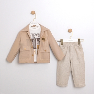 BEJ RENK YELEKLİ ERKEK ÇOCUK ÜÇLÜ TAKIM