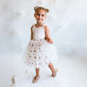 ÇİLEKLİ TÜTÜLÜ PRENSES KIZ ÇOCUK ELBİSESİ