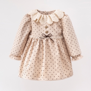 PUANTİYELİ AHŞAP DÜĞÜMELİ KIZ BEBEK ELBİSE