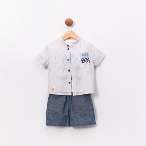 ÇİZGİLİ KUMAŞ YAZI NAKIŞLI ERKEK ÇOCUK İKİLİ TAKIM