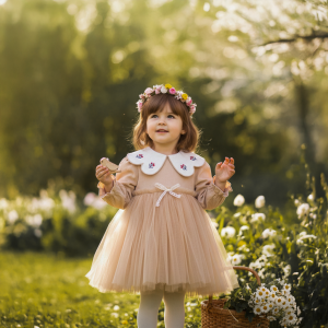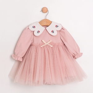 ÇİÇEK YAKALI TÜLLÜ KIZ BEBEK ELBİSE