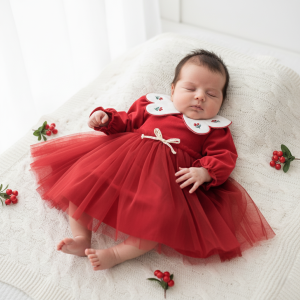 KIRMIZI TÜTÜLÜ KIZ BEBEK ELBİSE