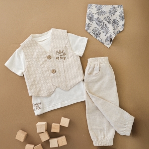 EKRU YELEKLİ 3 LÜ ERKEK ÇOCUK TAKIM