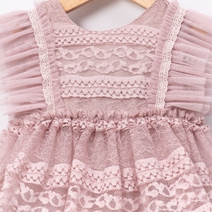 Cumino Sandy Somon Ekru Fiyonklu Fırfırlı Dantel Kız Elbise 2-3-4-5 Yaş