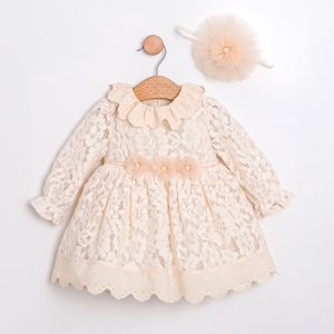 ÖZEL GÜN İÇİN TASARLANMIŞ DANTELLİ KUMAŞ KIZ BEBEK ELBİSE