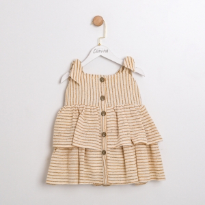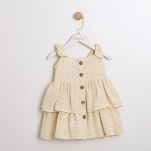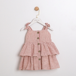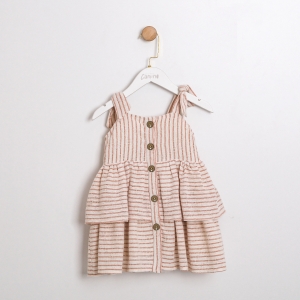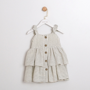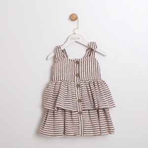 ÇİZGİLİ KUMAŞ AHŞAP DÜĞMELİ KIZ ÇOCUK ELBİSE