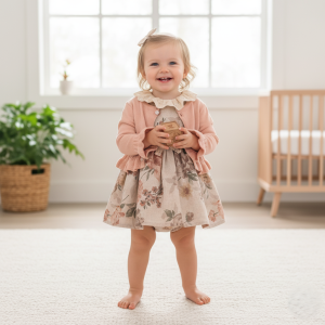Cumino Jasmine Pudra Vizon Uzun Kollu Kız Elbise 9-12-18-24 Ay