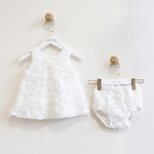 BEYAZ KIZ BEBEK ELBİSE ŞAPKALI